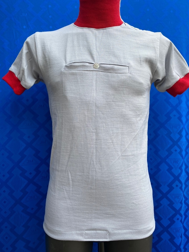 • MAGLIA LANA ANNI 10’/20′ GRIGIO CHIARO COLLO E POLSINI ROSSI