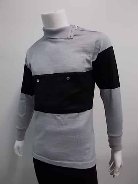 • MAGLIA M/L LANA ANNI 20’/30′ GRIGIA FASCIA NERA