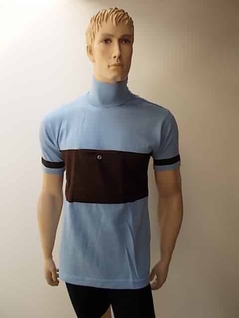 • MAGLIA LANA ANNI 20’/30′ CELESTE FASCIA MARRONE