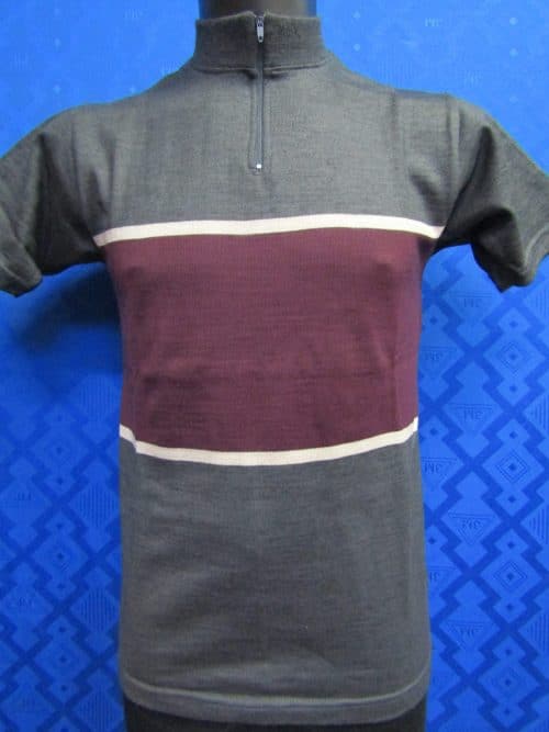 MAGLIA LANA ANNI 70′ GRIGIO SCURO FASCIA BORDEAUX E RIGA PICCOLA CREMA
