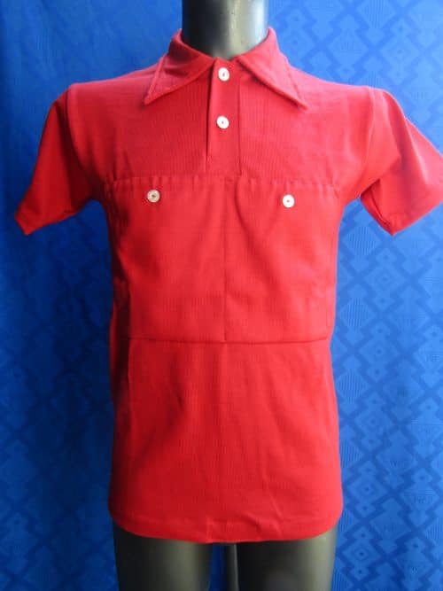 MAGLIA LANA ANNI 70′ ROSSA CON FASCIA E MANICHE GIALLO E NERO E BORDINO ROSSO