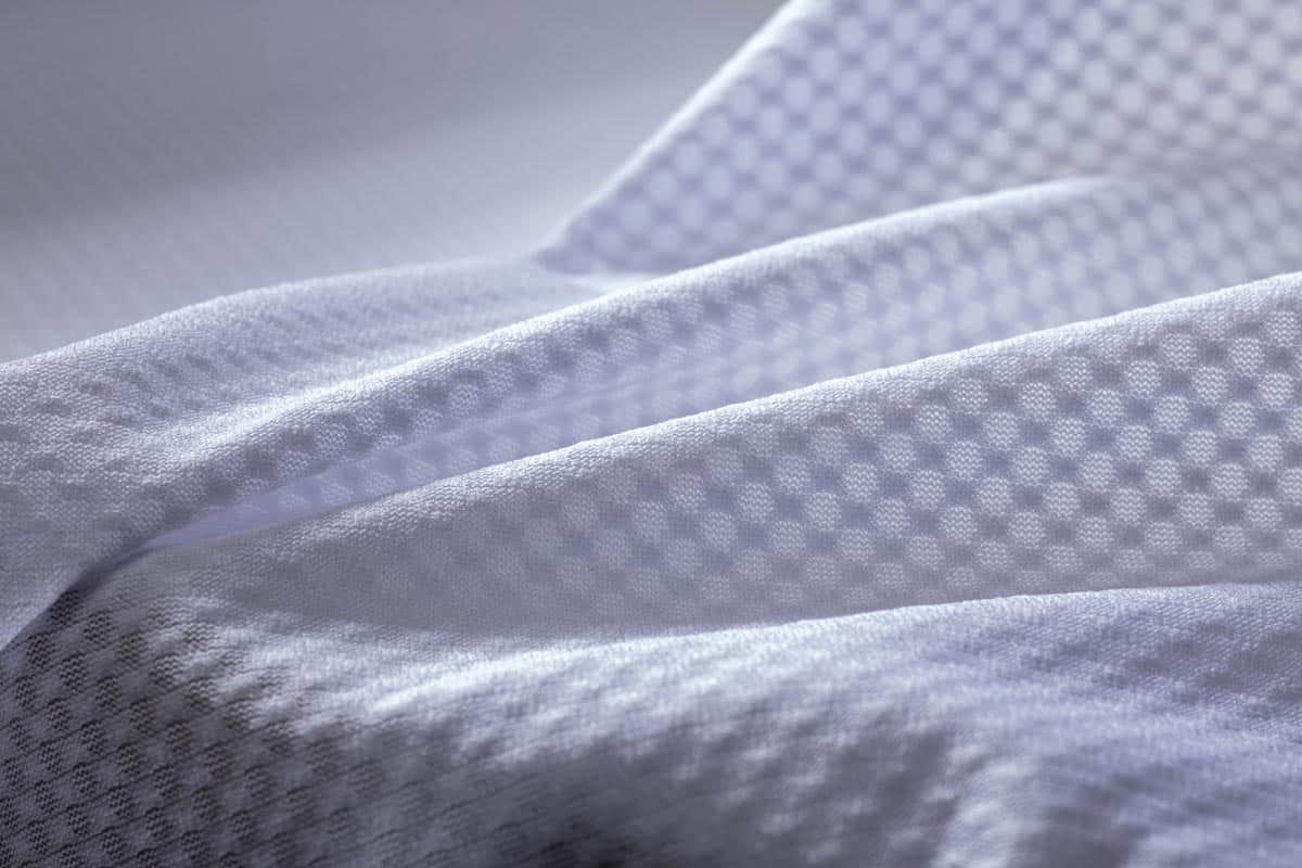 Tessuto a maglia “single jersey” bielastico, finezza 40, struttura a microfori spaziati.
