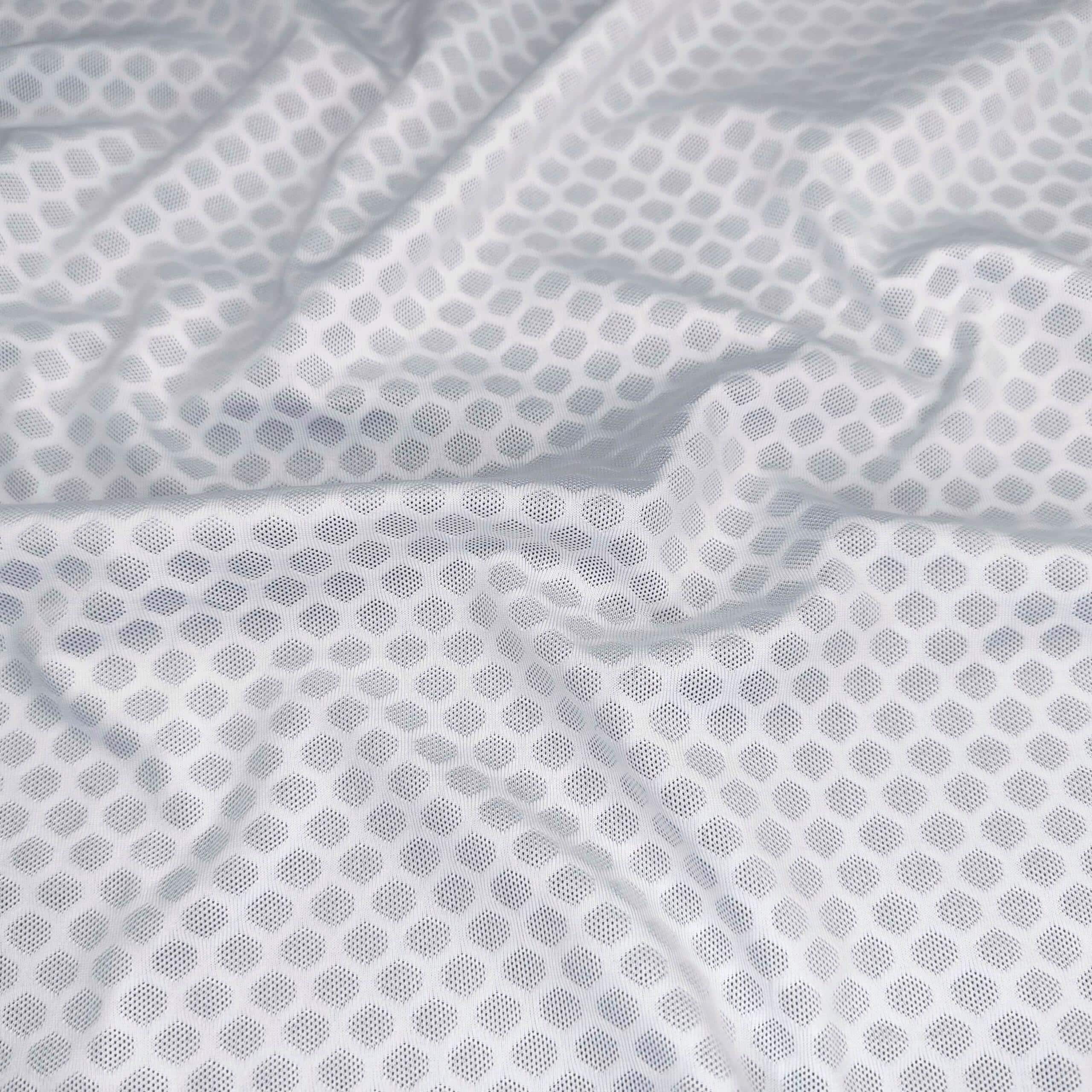 Tessuto elasticizzato leggero in maglia ordita, struttura a nido d’ape per una traspirabilità superiore e asciugatura rapida, buona compressione, ottima resistenza all’abrasione. Ottimi risultati di stampa. Ottimo per il dosso del Body TRIATHLON grazie alla struttura idrofila.