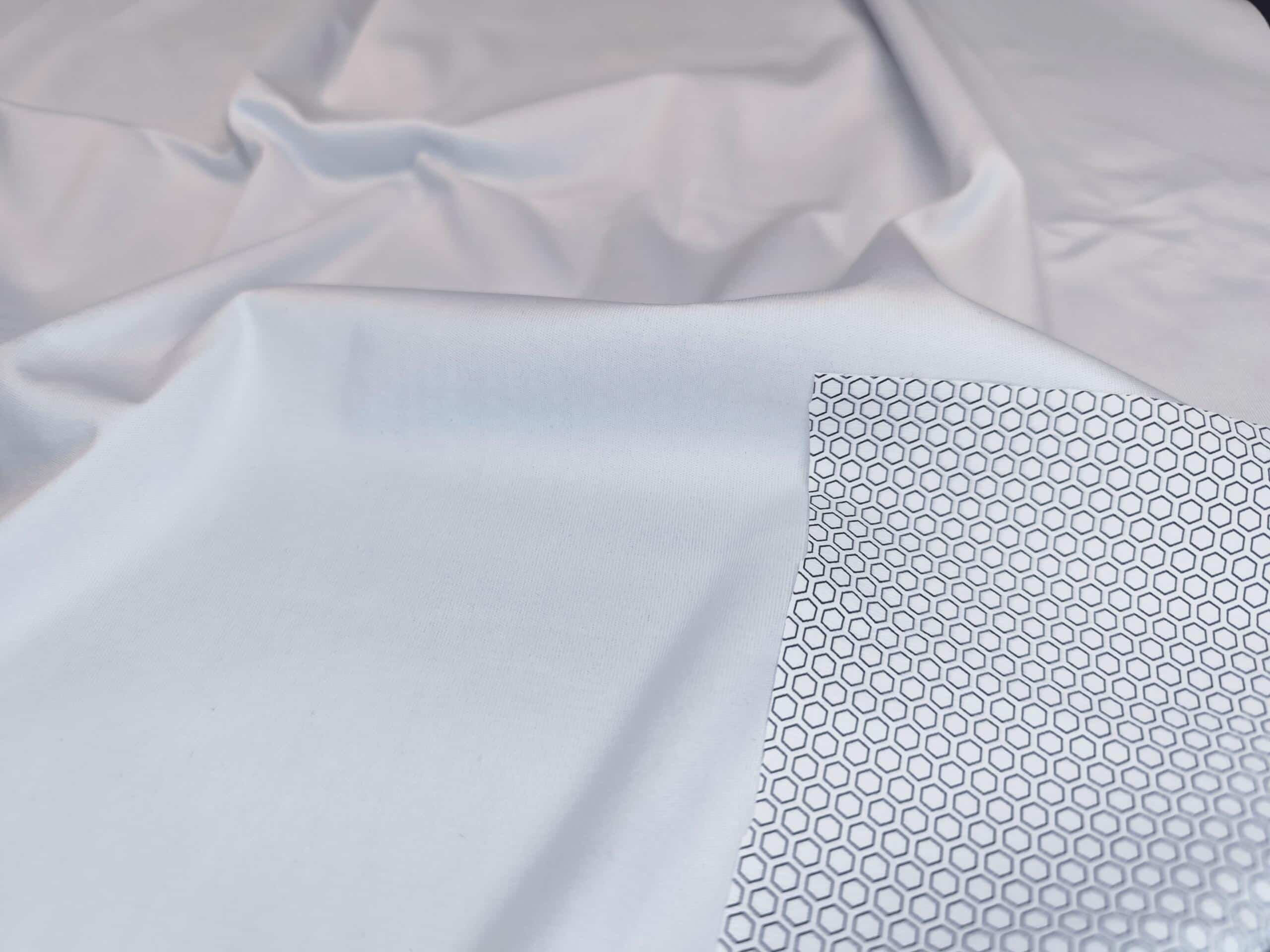 Tessuto elasticizzato traspirante leggero, morbido al tatto, elevate proprietà traspiranti e ottimi risultati di stampa grazie al punto di bianco e del trattamento.
