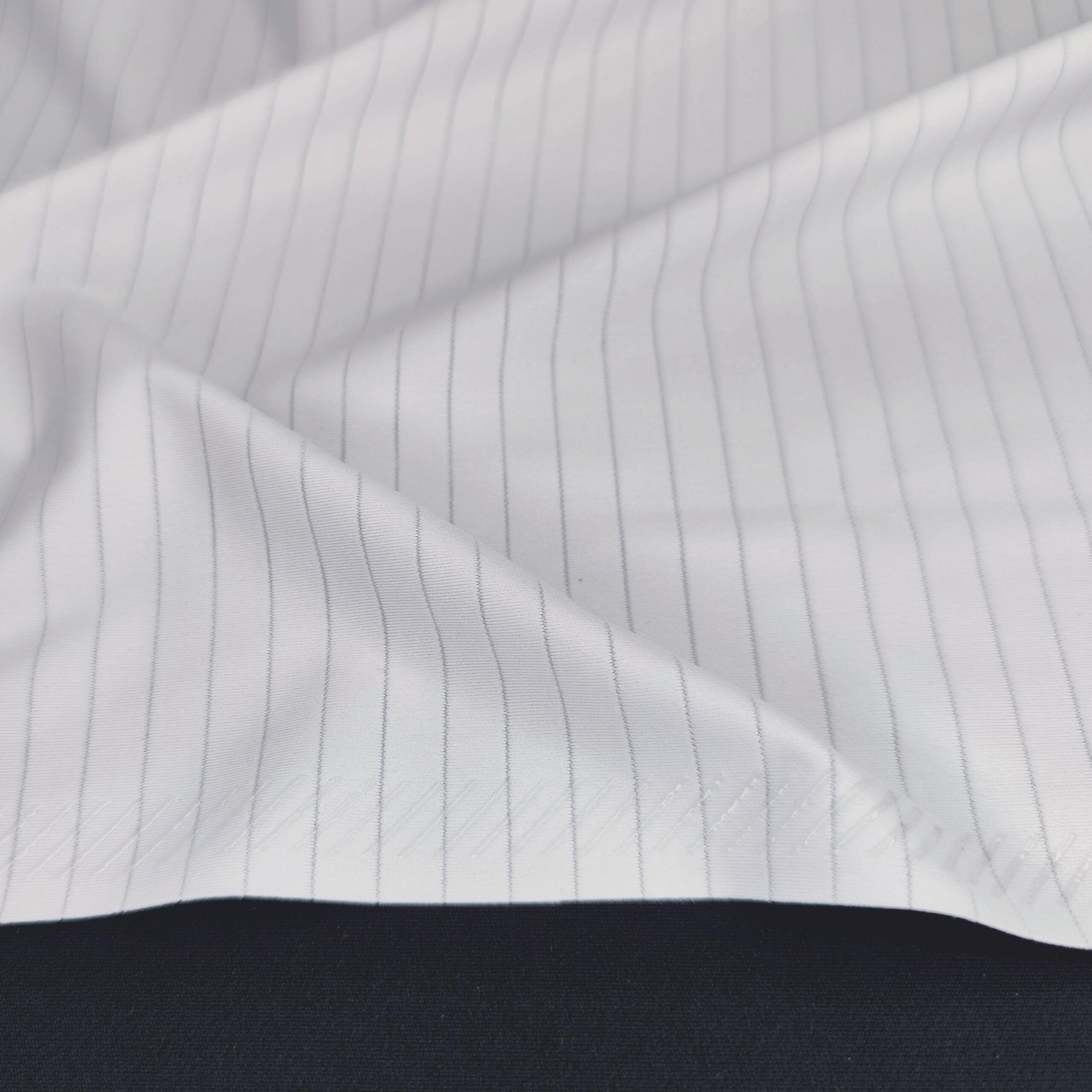 Tessuto bielastico, finezza 40, struttura a righe per un maggior ventilazione e aerodinamicità.