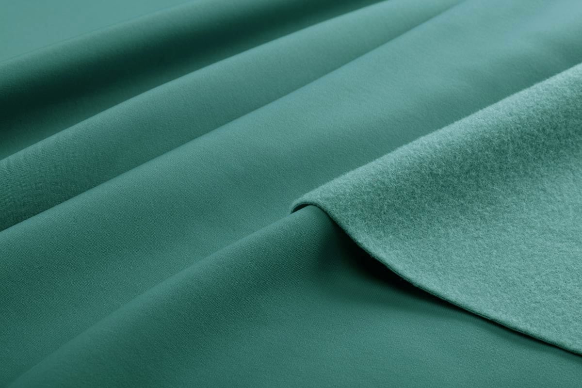 Tessuto caldo per le mezze stagioni. Lavorazione a maglia “double jersey” finezza 28 con struttura a pallino, garzato un lato, monoelastico, caldo e traspirante.