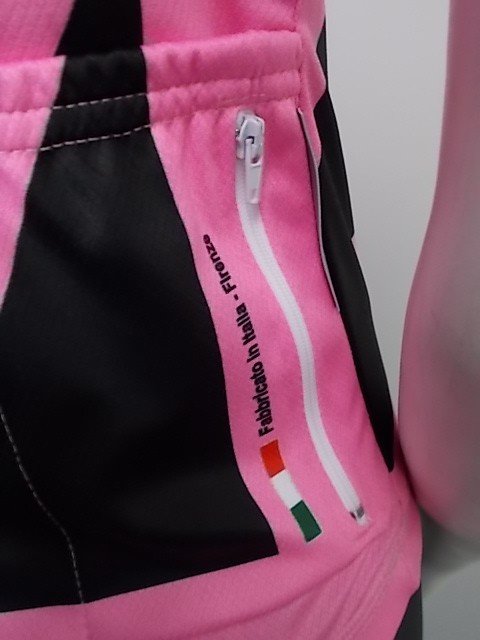 Maglia a manica corta, tessuto 100% poliestere multibava, zip corta, polsino elasticizzato in lycra, elastico in vita con silicone, 3 tasche posteriori e quarta tasca zip con foro interno per auricolare.