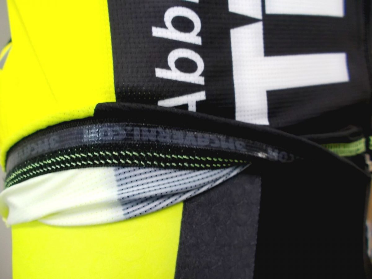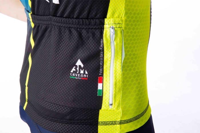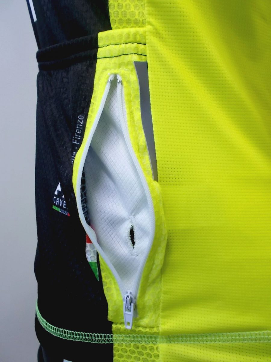 4° tasca con zip sulla parte destra delle tre tasche posteriori, con all’interno un foro/asola per il passaggio dell’auricolare per poter effettuare chiamate o ascolatare la musica in allenamento.