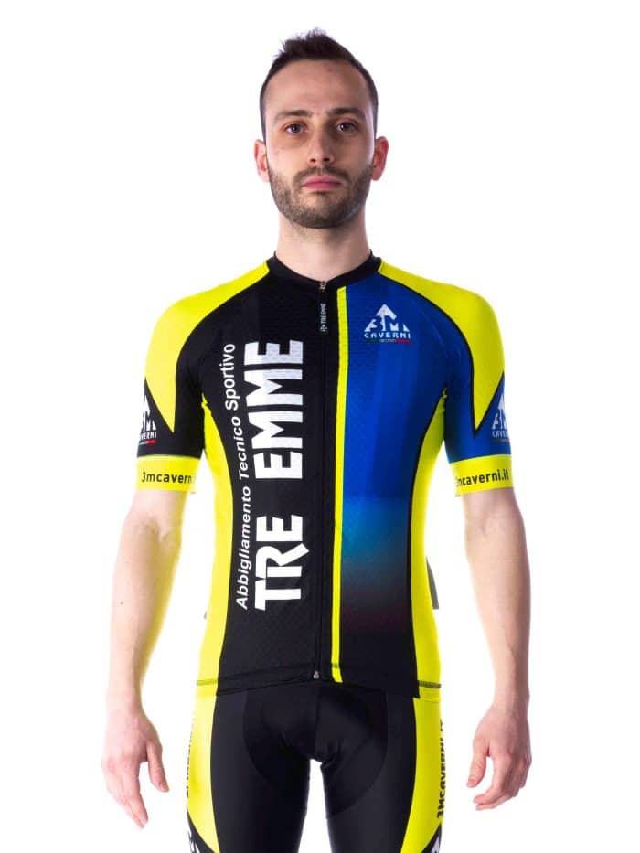 Maglia Ciclismo estiva a zip lunga, maniche corte, vestibilità aderente/slim predisposta per la posizione del ciclista.