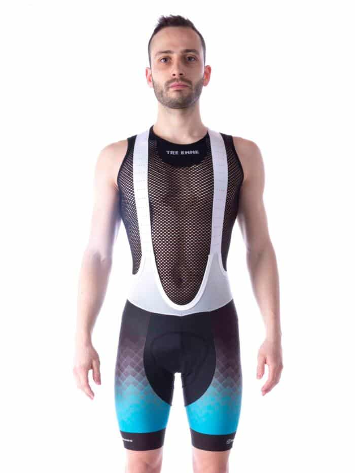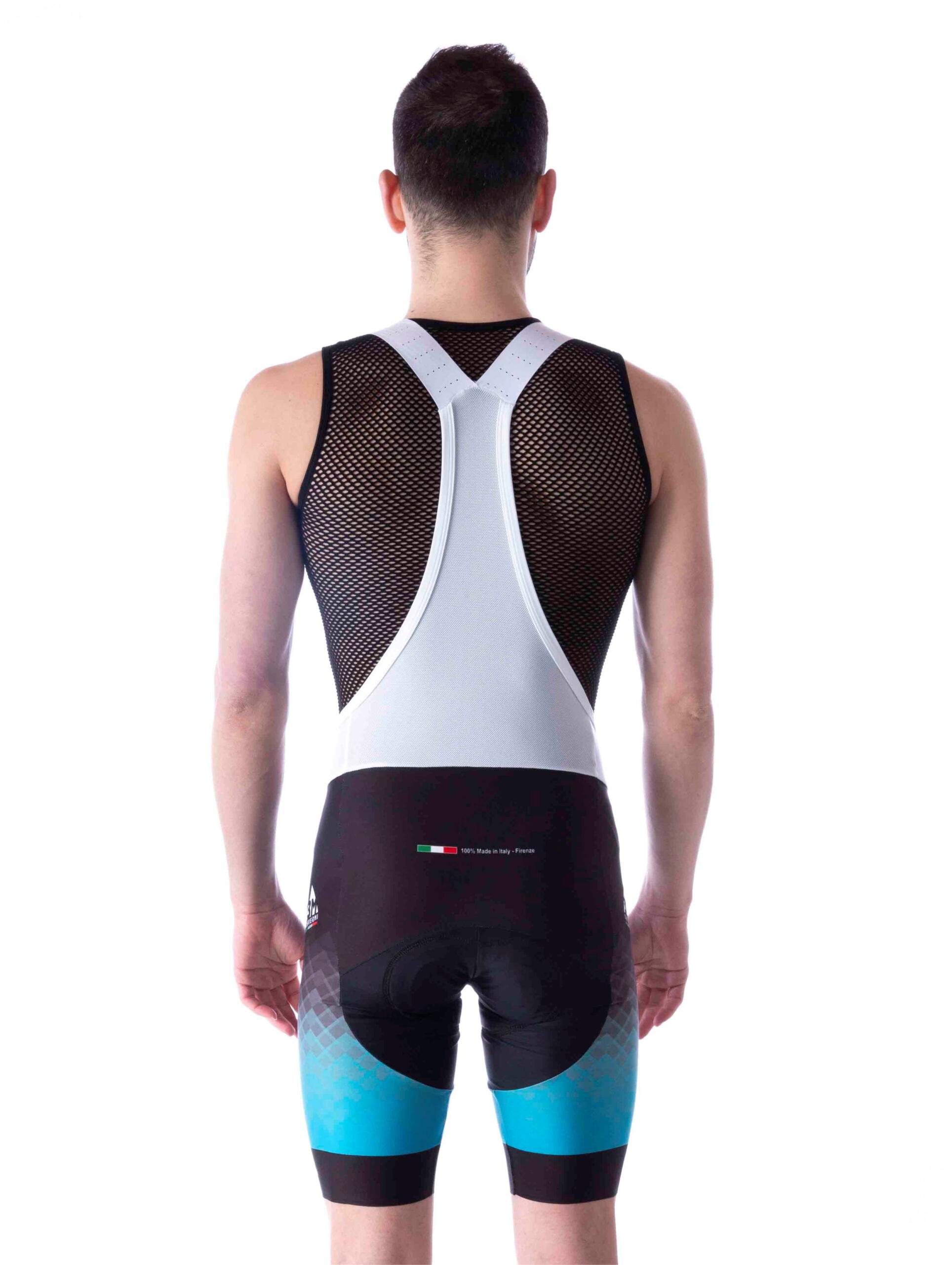 Il pantaloncino corto estivo in Lycra e bretelle con fascia elastica di cm 4,5, anatomico, comodo e versatile.