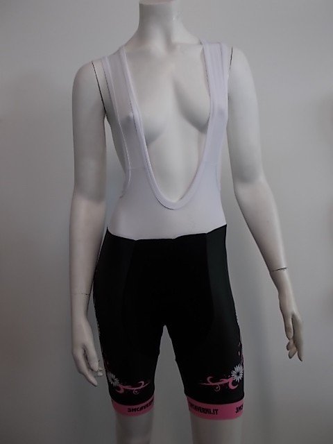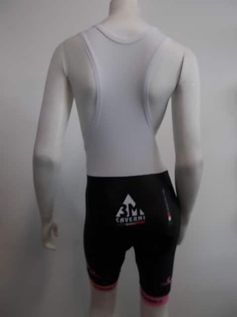 Pantalone corto estivo in lycra 220 gr con bretelle traforate per una maggiore traspirabilità , elastico sulla coscia a taglio vivo con silicone, fondello ht90-al in alcantara (anallergico)  ad alta densità per lunghe percorrenze (primo fondello “y style” sagomato senza lunette fa si che questo fondello segua perfettamente il corpo in movimento).