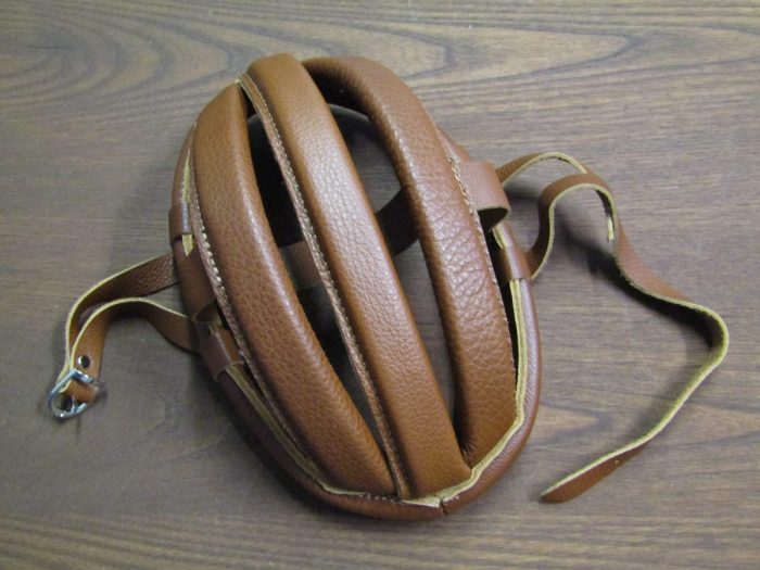 Casco ciclismo vintage vera pelle marrone per manifestazioni d’epoca.
