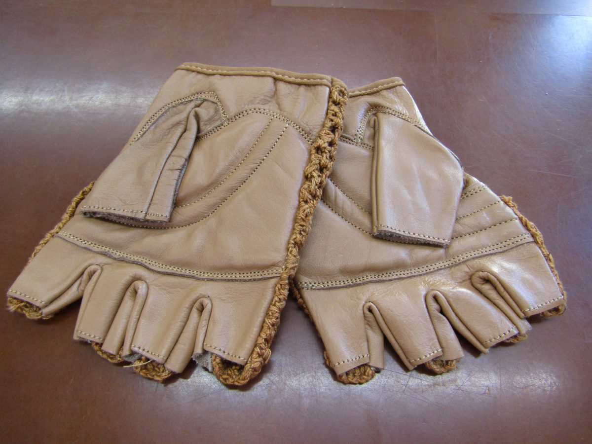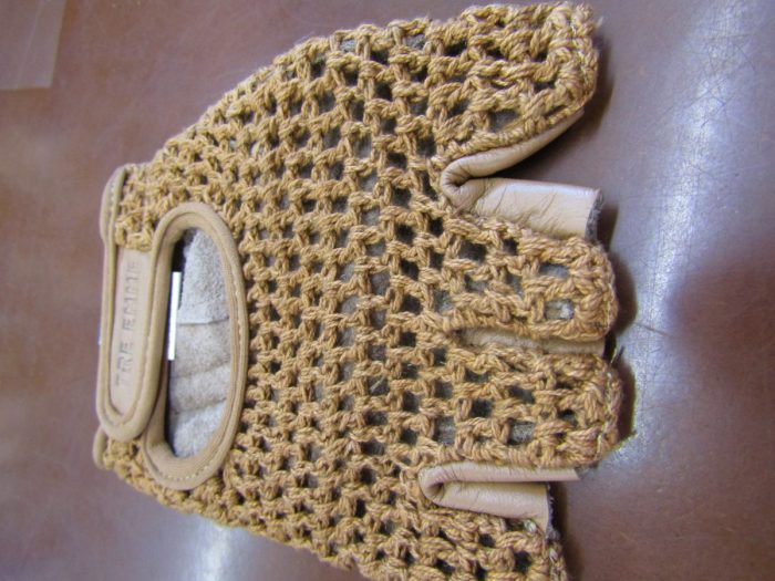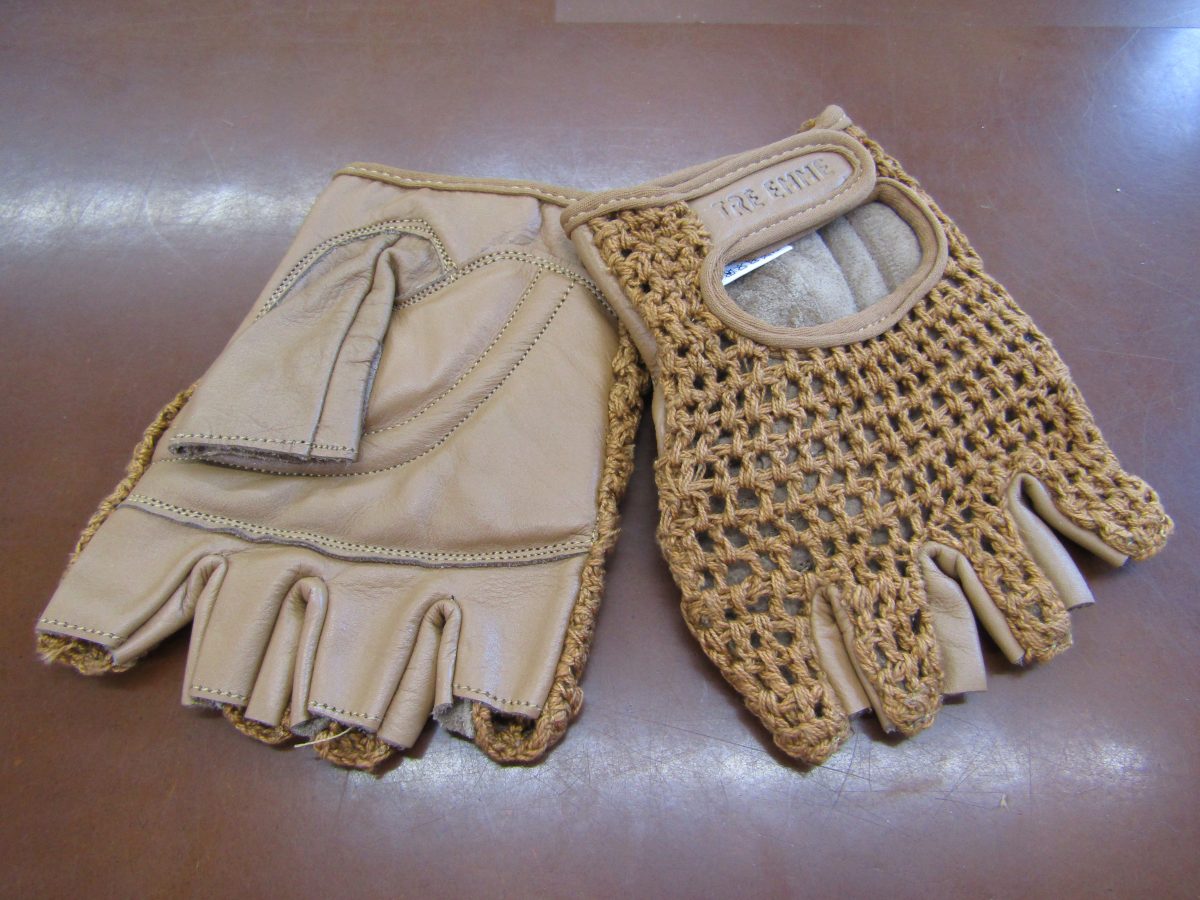 Guantini da ciclismo vintage. Dorso in cordura, palmo in ecopelle imbottito. Chiusura al polso con velcro e incisione TRE EMME. Colore: Marrone