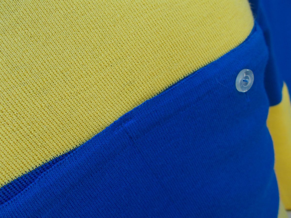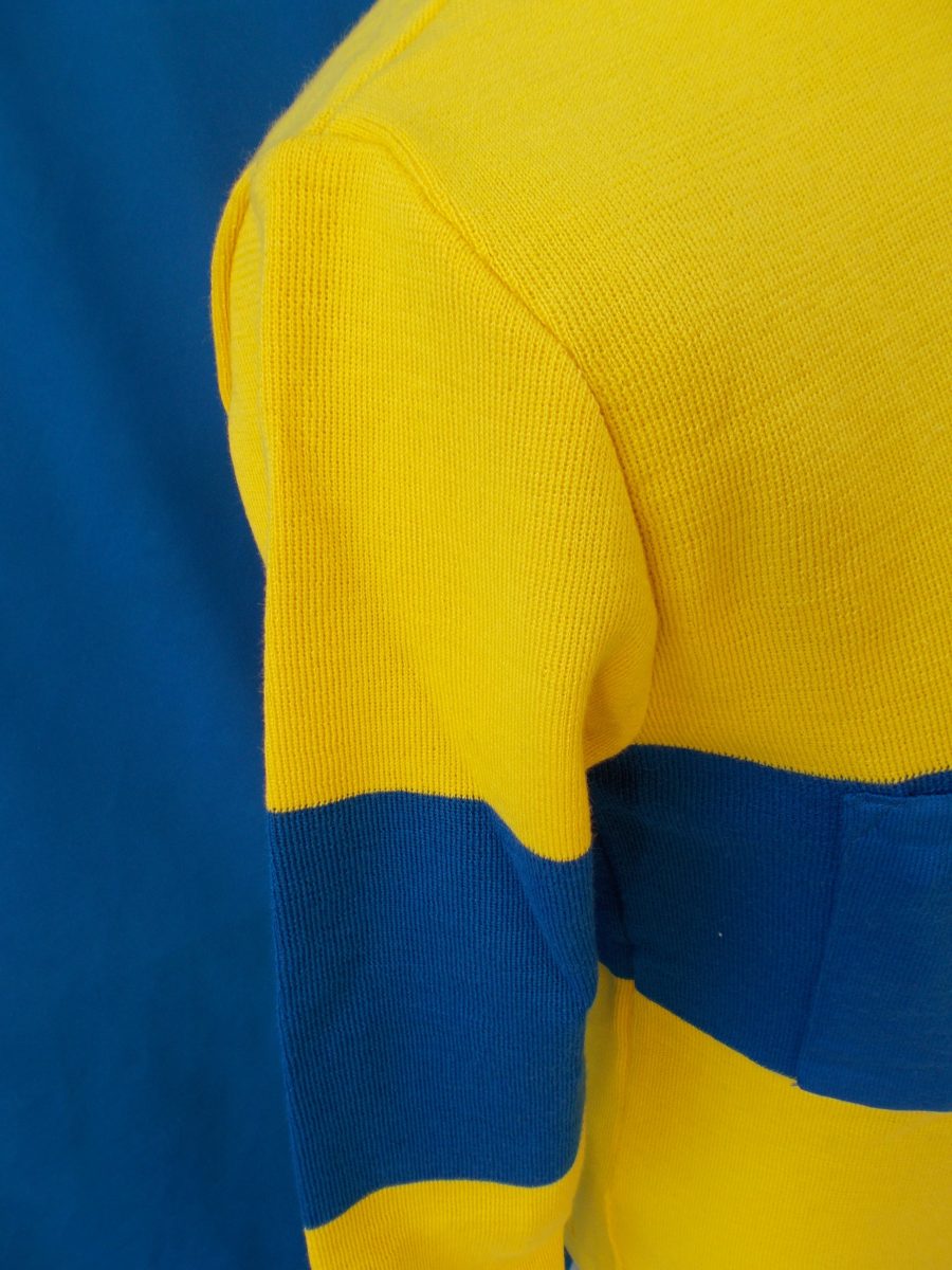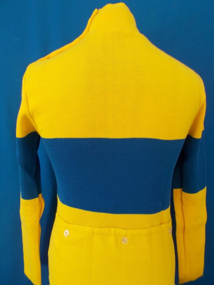 • MAGLIA LANA ANNI 70′ AZZURRA FASCIA BIANCA CON RIFINITURE TRICOLORI