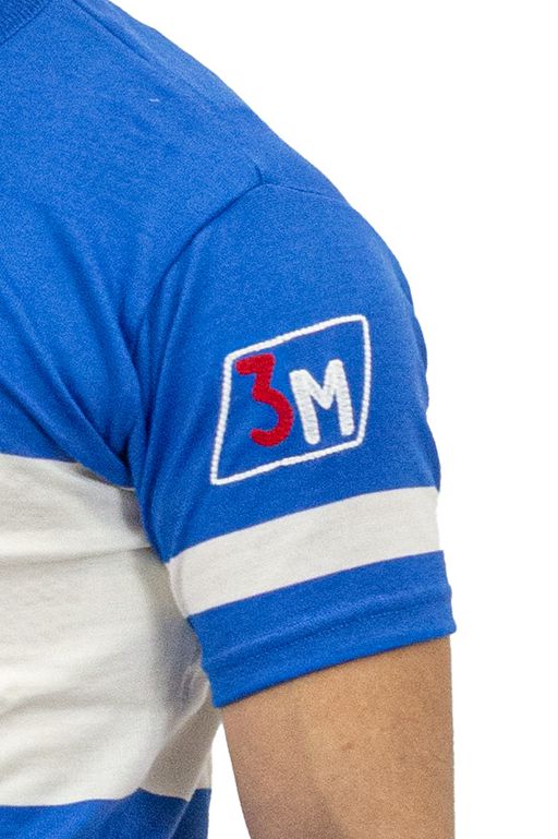 Il collo con zip e la lavorazione in costina “uno e uno” assemblata a taglia e cuci, come nelle storiche maglie 3M Caverni, completano un capo pensato per chi ama pedalare con lo stile autentico delle ciclostoriche.