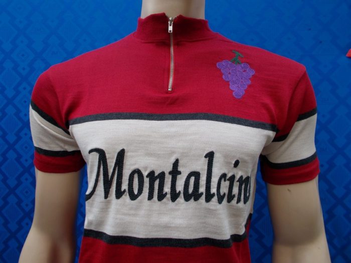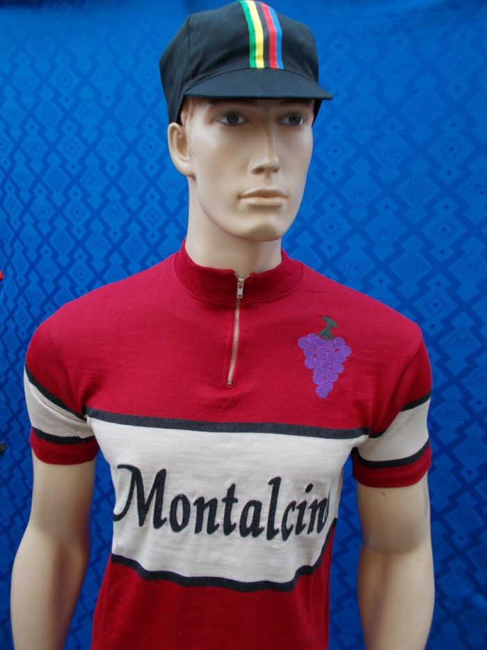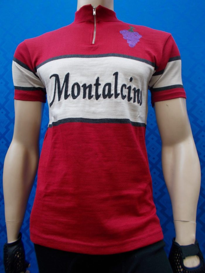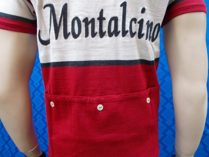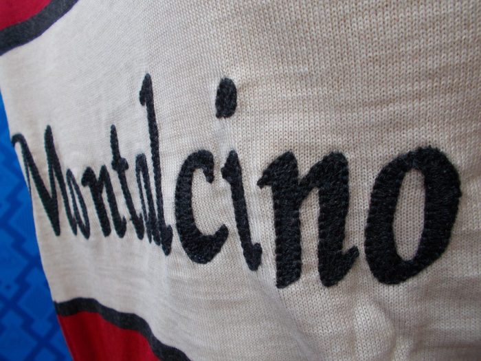 Maglia ciclismo vintage in misto lana merinos, manica corta. Ricamo: Montalcino.