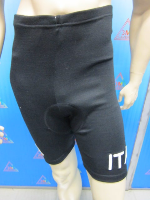 Pantaloncino Ciclismo Vintage in Lanetta Nera con ricamo in filo di lana bianco Italia.