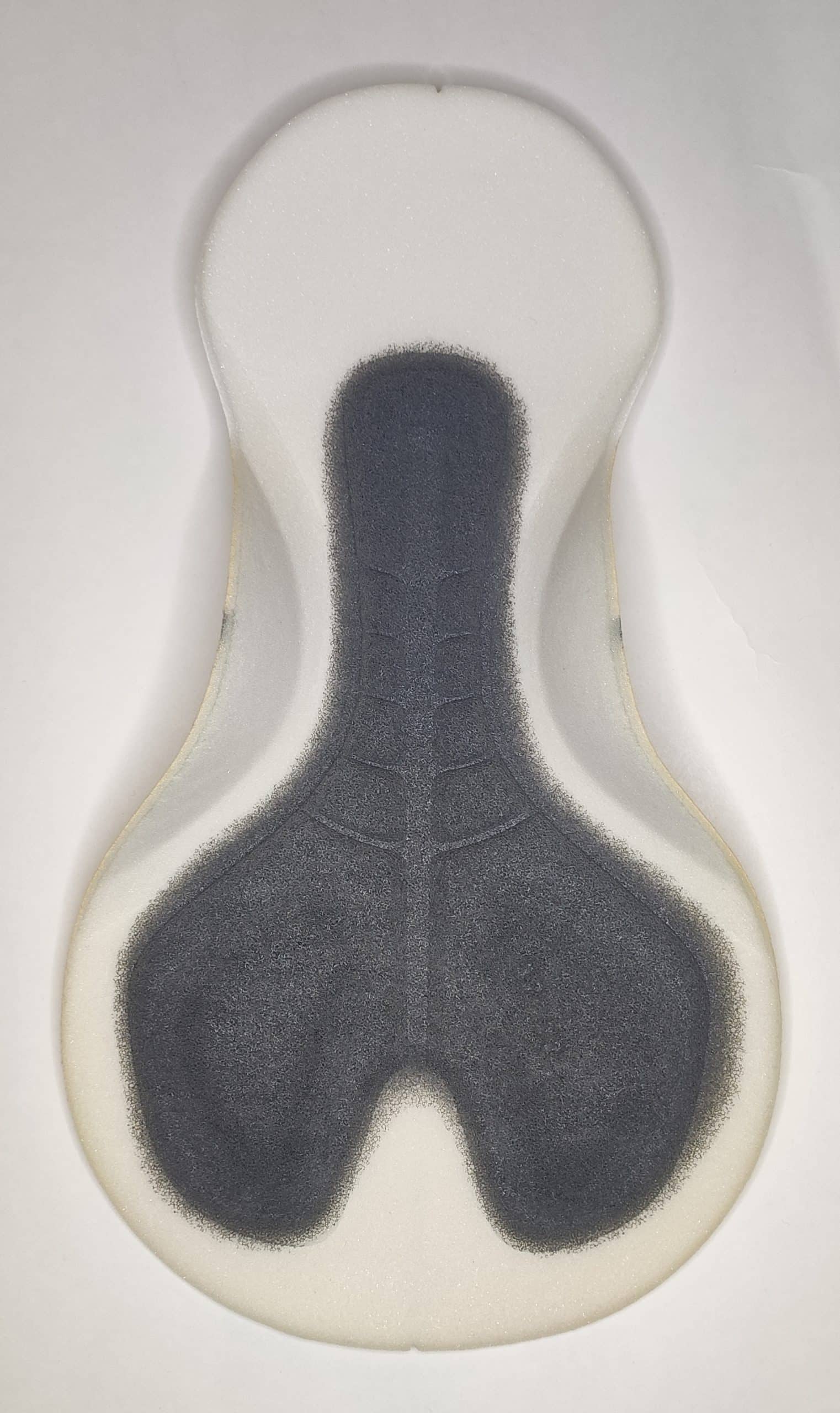 Secondo strato grigio in SCHIUMA A CELLE MOLTO APERTE RETICOLATA, densità 80kg/m3; un buon supporto che garantisce un ottimo rapporto schiuma/peso ciclista, un’ottima elasticità ed una eccellente traspirazione.